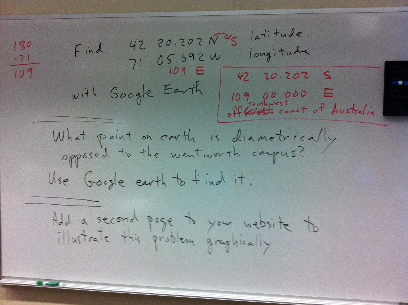 Finding the Complete opposite coordinates from Wentworth Institute of Technology