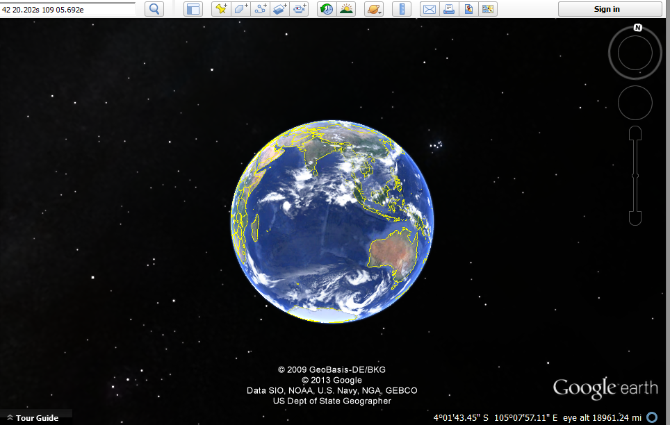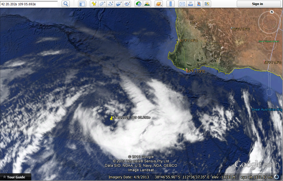 My first ideal move would be to find the opposite coordinateby reversing the direction: North becomes 42 20.202 S, and West becomesapproximately 109 east. Â